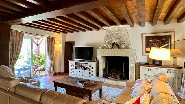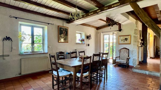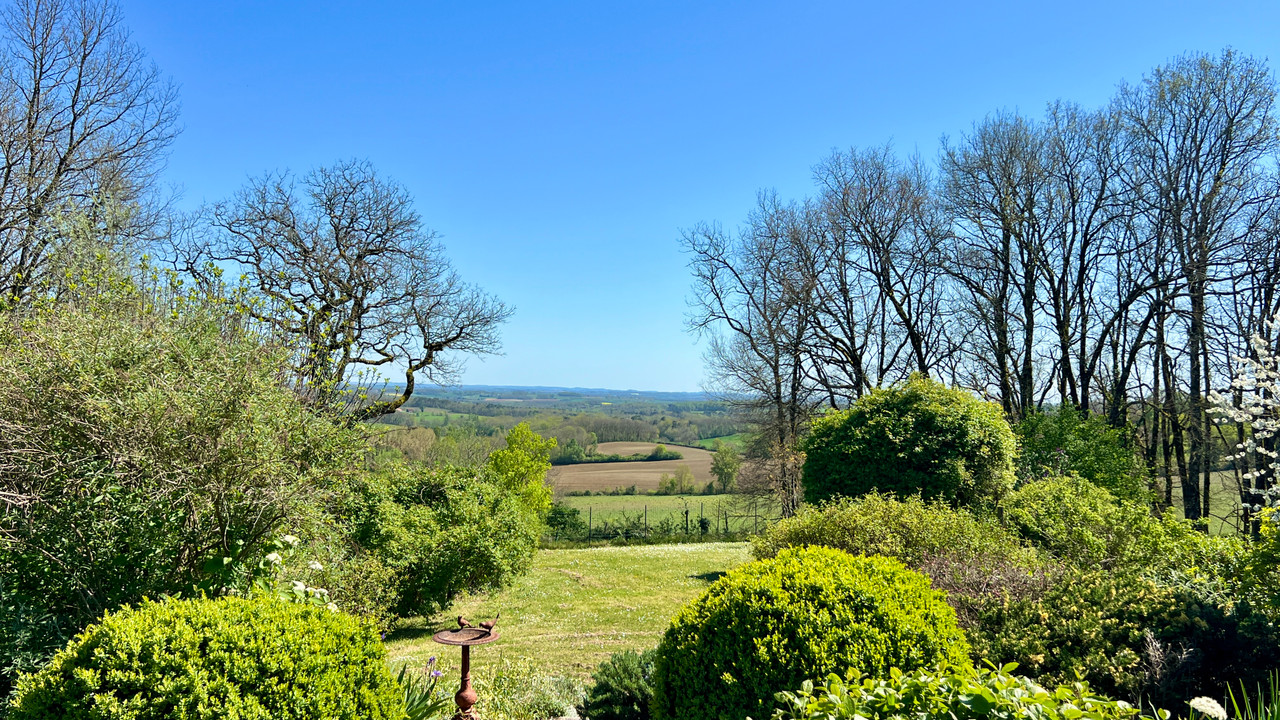 A40801GJP47 - Beautiful 5-bed stone property built in 1996, combining traditional character with modern comfort. Set on one hectare of enclosed, landscaped gardens with an additional three hectares of adjoining land, it offers magnificent open-countryside views. Features include a carport for three vehicles and a swimming-pool terrace with pergola overlooking spectacular scenery. Land with pasture area, water point for animals, and a truffle oak plantation. Ideally located just 2 km from local amenities, 10 minutes from Eymet, 15 minutes from Duras, and 30 minutes from Bergerac Airport.
