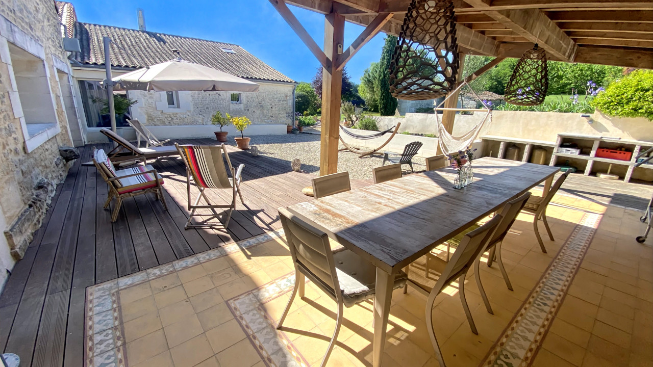 Across the three properties, there are a total of 8 bedrooms and an impressive 500m² of habitable space, complemented by two garages, additional outbuildings, and a private, fully enclosed garden. The setting is wonderfully peaceful, yet just a few minutes' drive from the charming spa town of Jonzac and its full range of amenities.