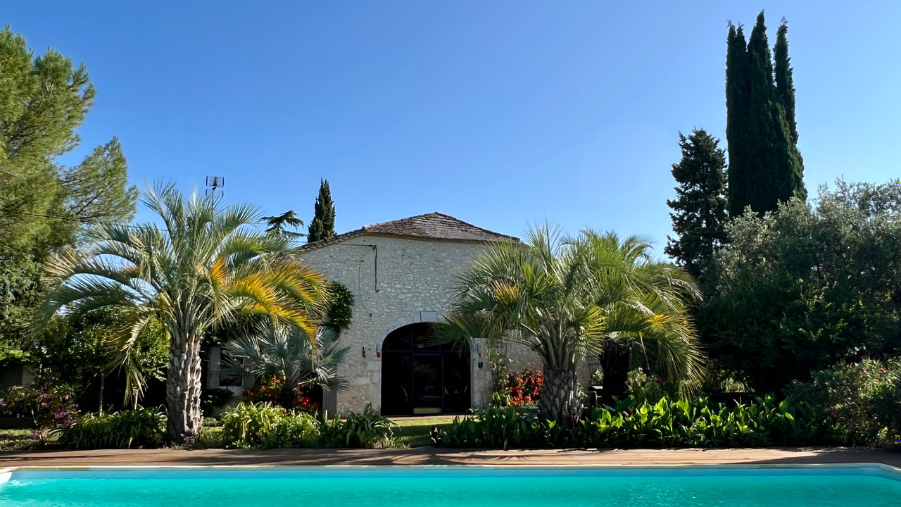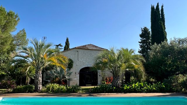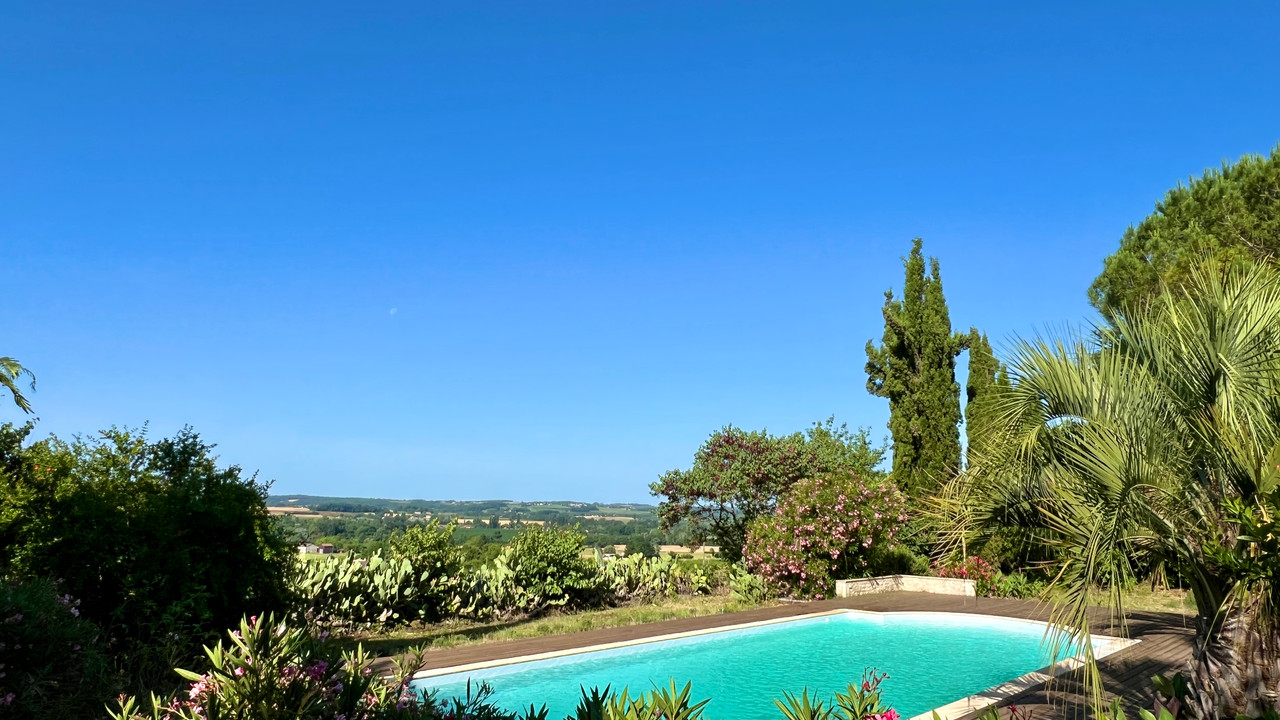 A37770GJP47 - Tucked away at the end of a country lane that winds up the hillside, this enchanting property enjoys panoramic views from all sides. Surrounded by a vibrant, flower-filled garden and featuring a large swimming pool, the house has been extensively renovated and modernised in recent years. Highlights include a breathtaking living room with a cathedral ceiling and a veranda that overlooks the pool. The spacious accommodation offers four bedrooms, three bathrooms, and a generous kitchen-dining area. Ideally located just 3 km from the charming town of Duras and only 39 minutes from Bergerac airport.