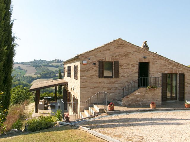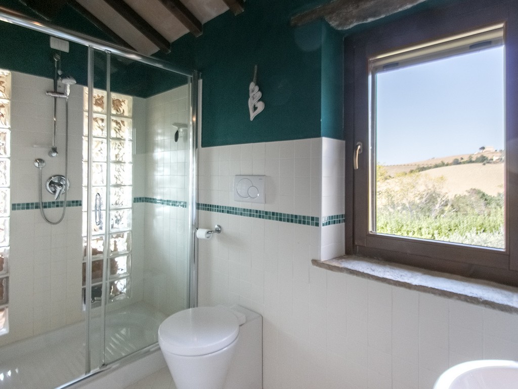 Farmhouse for sale in Monterubbiano, the Marche, with heated swimming pool and garden with splendid views of the surrounding hills