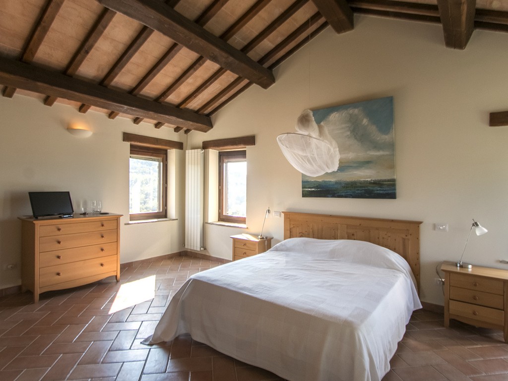 Vendido ID: 153779Farmhouse for sale in the Marche with swimming pool and garden with splendid views of the surrounding hills a few km from Monterubbiano. The farmhouse is about 170 square meters plus 40 square meters of porch with 3 bedrooms and 2 bathrooms, an annex with bedroom and bathroom, 5100 square meters of garden, 12x6m swimming pool, heated with solar panels.