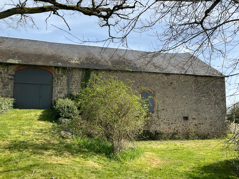 To the front of the house is a gravelled area with a well. There is a grassy ramp to the hayloft level of the barn, with sectioned animal pens and troughs running the full length of the level below.