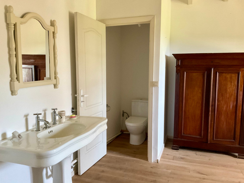 The house boasts a total of 6 toilets, 4 on this level (three en-suite), one on the ground floor, and one outside, handy when working or sitting outside. This makes the property particularly suitable as a chambre d’hôte.