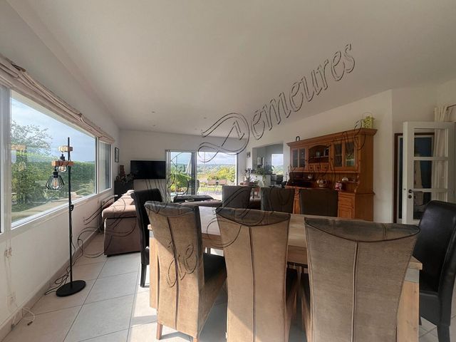 Located on a plot of 2335 m², this house is composed on the ground floor, of a large living room, bathed in light, thanks to the through light. This space, equipped with a wood stove for winter evenings, opens onto the garden and the fitted and equipped kitchen. On this level, two bedrooms, with shower room, one of which also has a toilet, toilets with washbasin. Access to the terrace is available from both bedrooms.