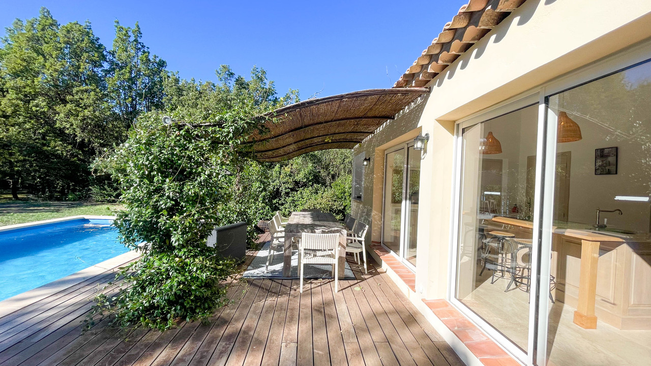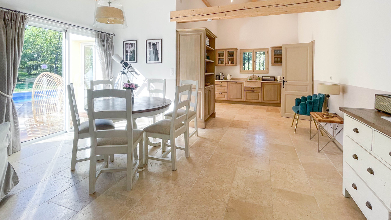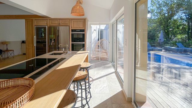 The kitchen has been recently renovated and leads out to the swimming pool and terrace.