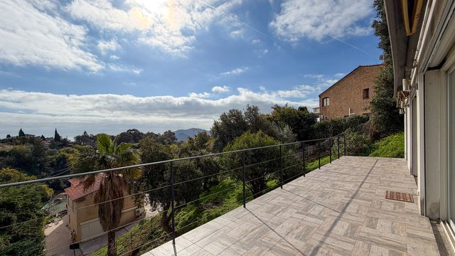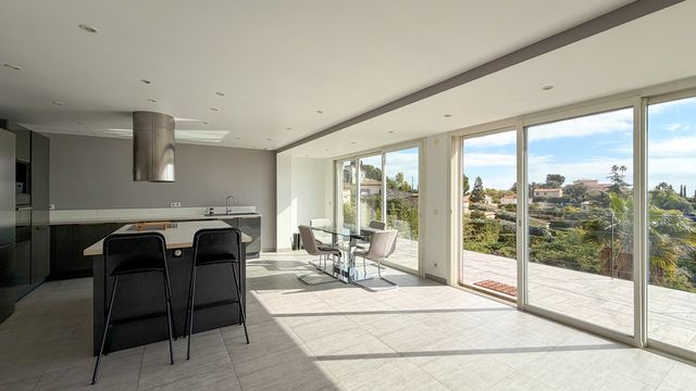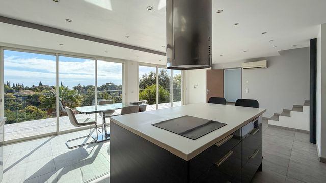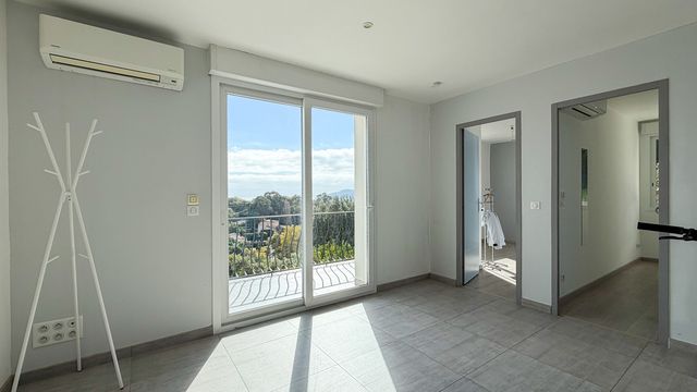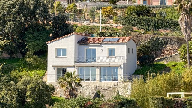 A43012JTO06 - Located close to local amenities, the A8 motorway and the beaches of Mandelieu-la-Napoule, this individual villa enjoys stunning panoramic sea views. The upper floor offers a bright entrance hall, two bedrooms, a family bathroom, laundry room and a versatile office or lounge space, all opening onto a large terrace. The lower level features a spacious open-plan living room and kitchen with an entire wall of doors leading to another terrace with breathtaking views, plus a master suite with dressing room and shower room. Benefits include reversible air conditioning, solar panels for hot water, full fencing and mains drainage. A rare opportunity in a prime Riviera location, ideal as a main or holiday home.