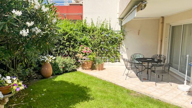 Juan-les-Pins – Beautiful 2-bedroom garden apartment with parking, garage and cellar.