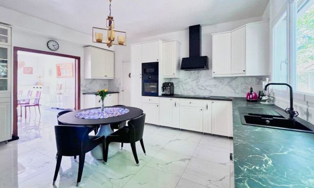 This characterful property, set on a landscaped 1,270 m² plot, offers generous spaces and exceptional light. Upon entering, a stunning marble staircase leads to a triple reception room with a fireplace, a study/library, and a fully equipped family kitchen. The ground floor also includes a master suite.