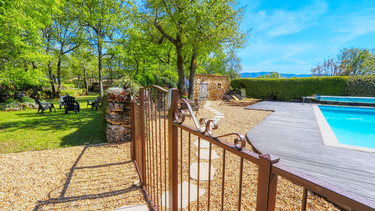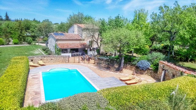 A04083 - Close to a small Provencal village, just 10 km from the town of Apt, this large stone property has all the ingredients for lovers of peace and nature. With all modern conveniences, it lies on a large, beautifully landscaped garden with trees, old stone walls, several sheltered nooks and crannies, as well as a large heated swimming pool, surrounded by decking, a BBQ area, a bowling pitch, a vegetable garden, etc. ....