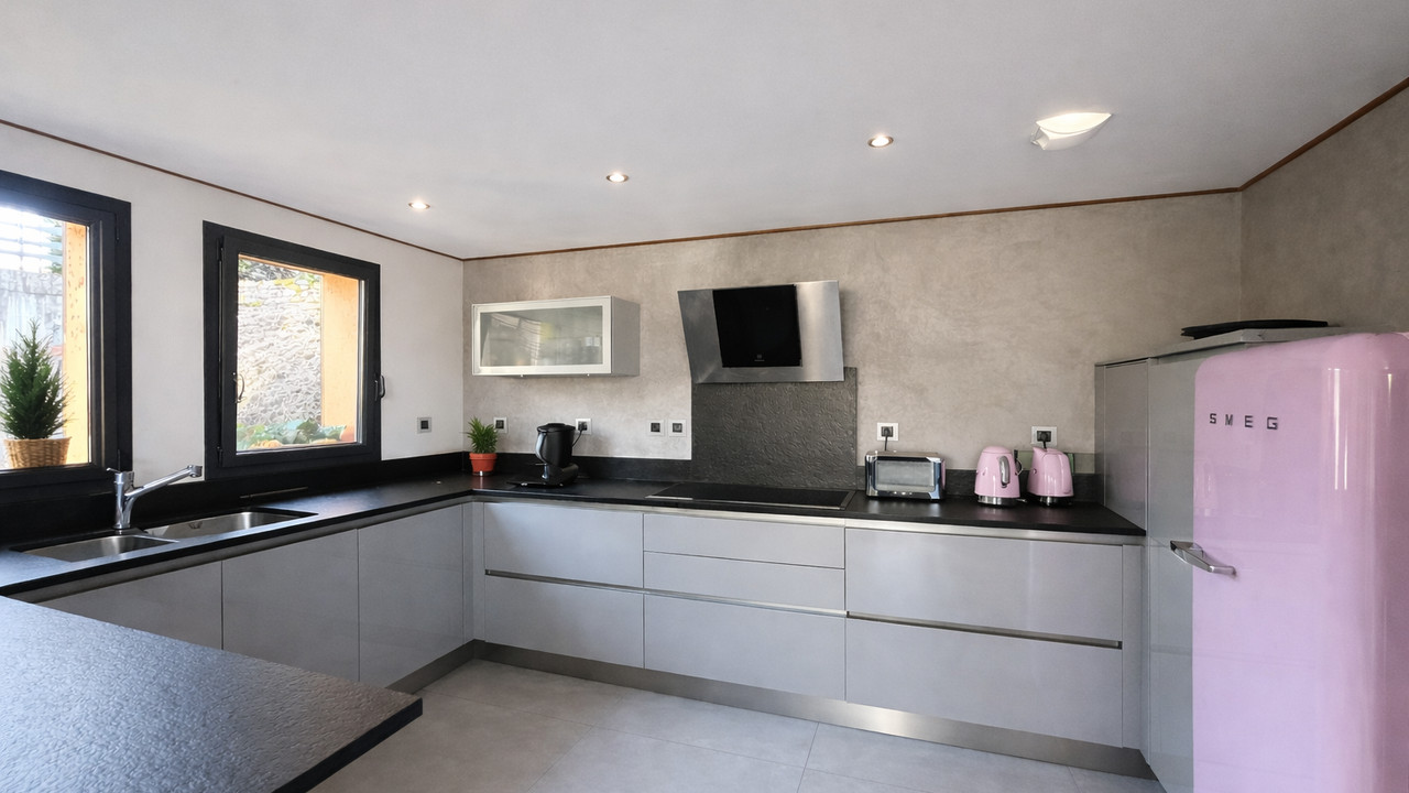 A43523SM73 - This fantastic modern home of a total of 234.88m2 ( 196.24m2 habitable) is located in a village of Courchevel just a short drive or free bus to the lifts of Courchevel Le Praz, or an even shorter distance to the ski lift in Brides les Bains taking you to Meribel. With a garage and outside parking the property itself comprises: - Entrance, office space or 5th bedroom - Large L shaped kitchen (with pantry), dining and living space with a large balcony terraace with stunning open views. plus an ensuite bedroom - 2 double bedroooms sharing a shower room, WC, 1 double ensuite with dressing room, and a laundry / storage area - Separate apartment of 42m2 with open plan living space, kitchen, 2 bedrooms, a WC, and shower room. Offering excellent potential for year-round living or as a holiday home, with the added benefit of accommodating guests independently or generating rental income from the lower apartment. With an impressive energy rating of B, this modern home is a rare opportunity Information about risks to which this property is exposed is available on the Géorisques website : https://www.georisques.gouv.fr