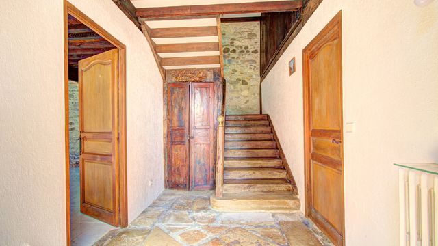 A39581CEL64 - OFFER ACCEPTED - Hidden away in an idyllic hillside setting, this traditional Béarnaise property comprises a charming farmhouse to update, two large barns and 5.6 hectares of land with a spring-fed pond, making it ideal for horses! Set around a sunny courtyard, the delightful south-facing farmhouse and outbuildings are completely hidden from view, with the closest neighbour more than 200 metres away. Beyond the courtyard, the gently sloping land extends over 5 hectares, which includes forest, meadowland and a spring-fed pond. On the horizon, the panoramic views of the Pyrénées are stunning! It may be possible to convert the loft space into more accommodation, such as one or two bedrooms and a shower room that friends and family an use when they come to visit. Alternatively, you could rent the farmhouse out as a gîte or offer B&B to tourists, walkers, cyclists and horse-riders who come to visit and explore the Pyrénées all year round... Information about risks to which this property is exposed is available on the Géorisques website : https://www.georisques.gouv.fr