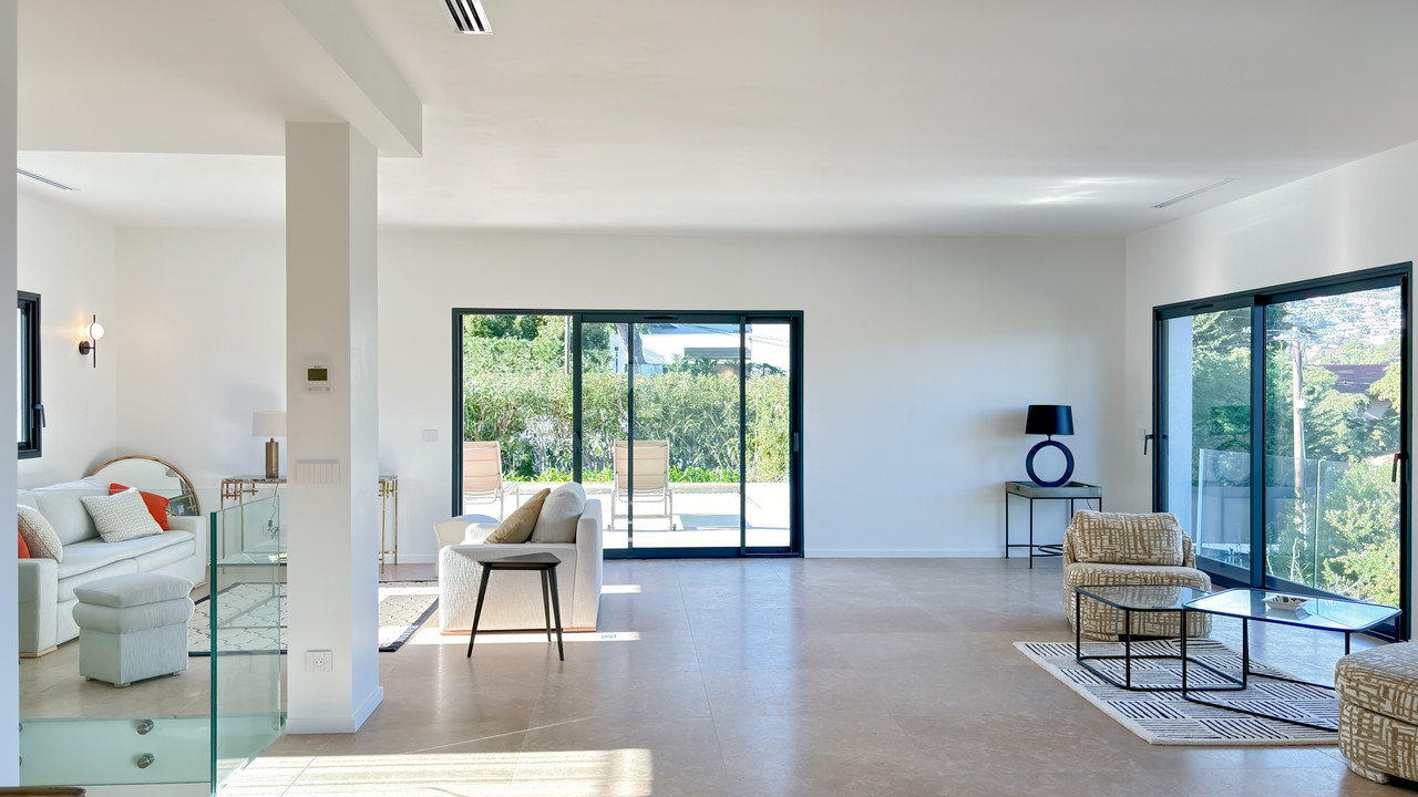 Fully renovated with the greatest care by a Franco-Italian team of architects, and surrounded by greenery with stunning views of the Mediterranean and the mountains, the villa has been specially designed as a haven of natural beauty with a living environment, combining contemporary elegance with Mediterranean charm.