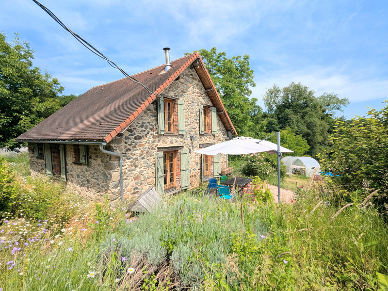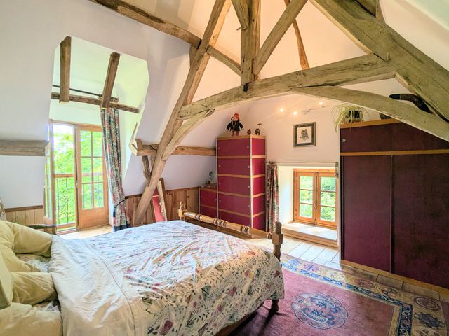 The generously sized plot of land (59,930m²) includes walnut and cherry trees, a large polytunnel ideal for gardening enthusiasts, woodlands and a charming garden cabin (12.1m²) powered by solar panels—ideal as a retreat, studio, or home office.