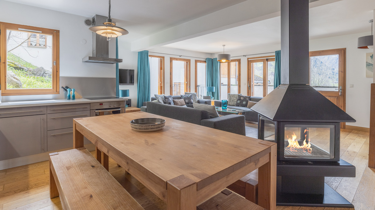 A35120EH73 - Positioned at the entrance of St Martin de Belleville in Le Hameau des Chapelles, this semi-detached chalet spans three floors and boasts 139m² of living space (115m2 Loi Carrez Surface area), five bedrooms, a TV room and a double garage. With its convenient location a short bus ride from the ski lifts, this property makes for a versatile mountain home in the heart of the Three Valleys ski area. Information about risks to which this property is exposed is available on the Géorisques website : https://www.georisques.gouv.fr