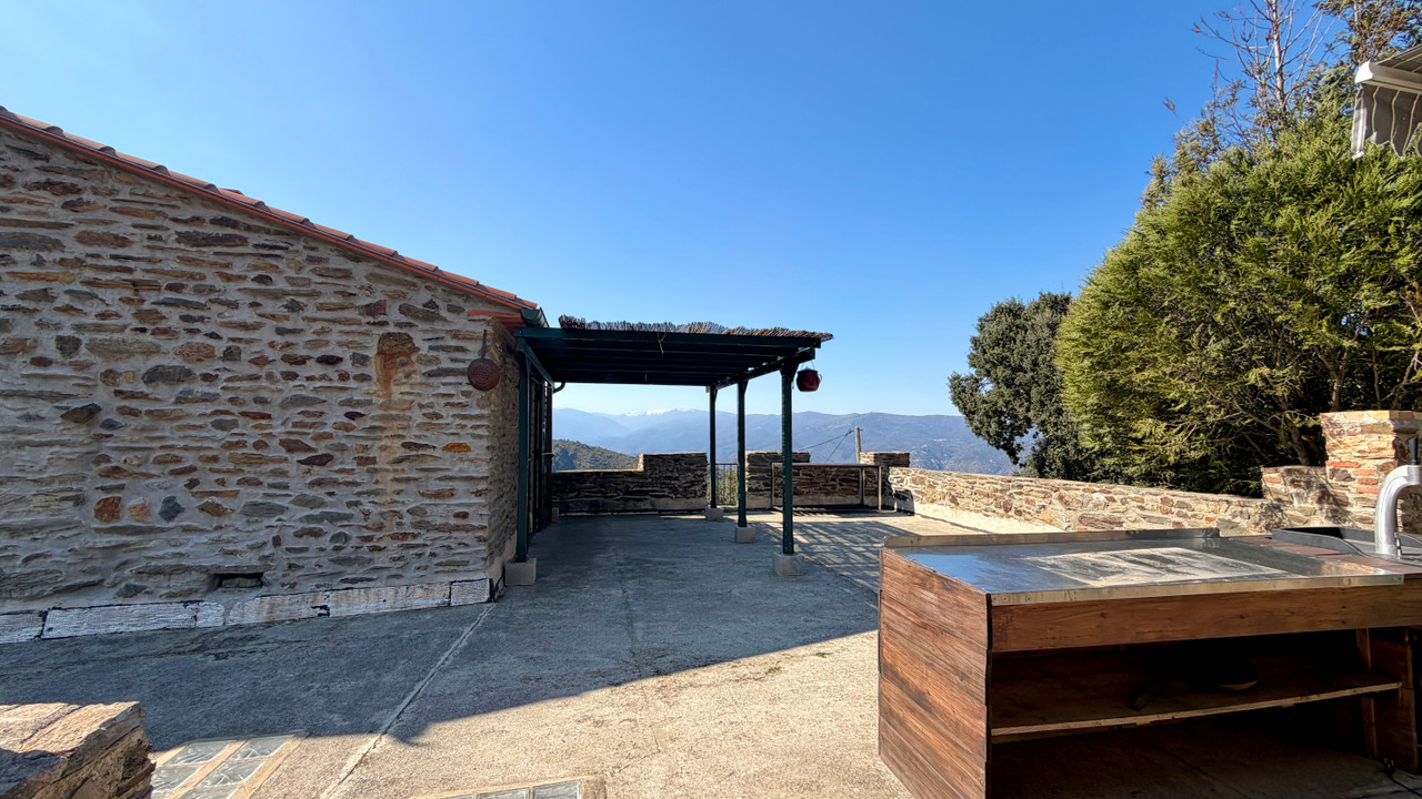 A43584DTU66 - Nestled within a peaceful commune close to Vinca, this charming 3-bedroom stone mas offers an exceptional lifestyle surrounded by nature, with breathtaking panoramic mountain views, absolute peace and excellent potential for a variety of rural or business ventures.