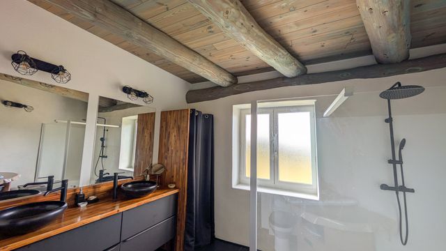 The night area includes 4 bedrooms and a shower room with WC. Upstairs, a spacious mezzanine offers flexible additional living space (lounge, office, playroom...), along with a fifth open bedroom enjoying panoramic views.