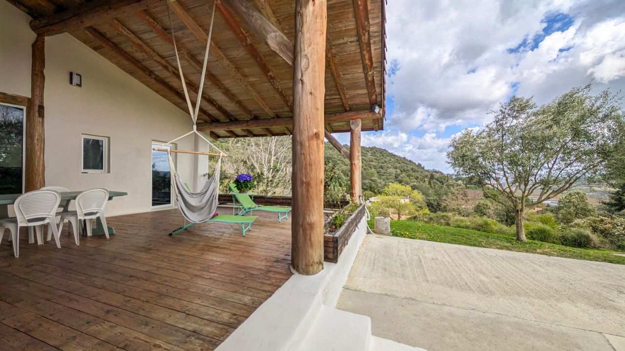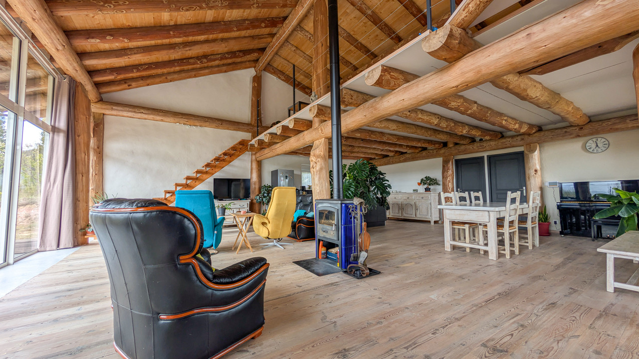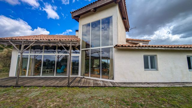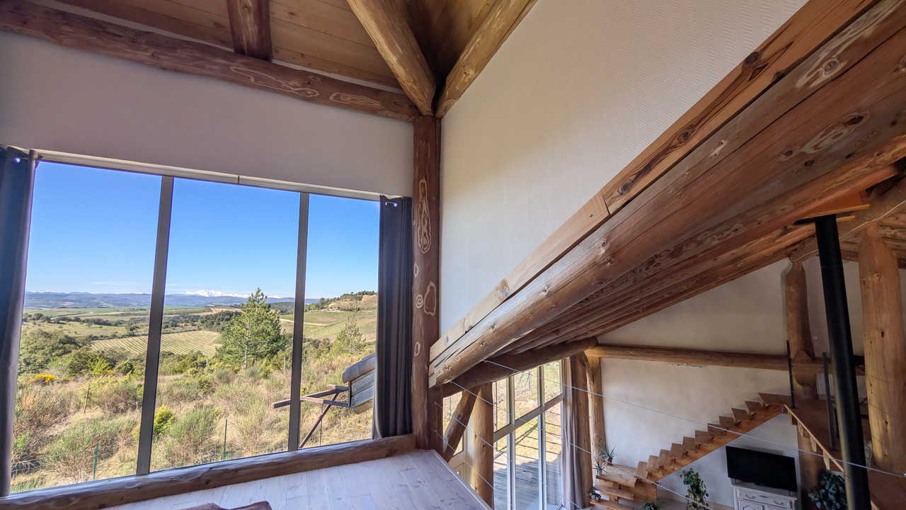 A43937LAC11 - Striking bioclimatic home built with natural materials (earth-straw and lime walls, local timber frame), delivering excellent energy performance. Bathed in natural light and designed to open onto its surroundings, it enjoys far-reaching views of the Pyrenees and the Montagne Noire from both the interior and two terraces.