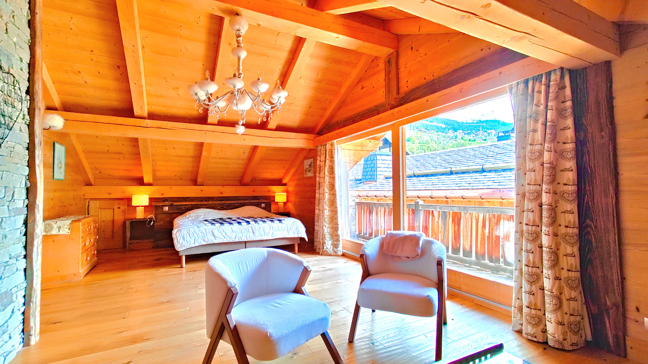 Nestled in the charming hamlet of Le Raffort, this unique 6-bedroom, 5-bathroom chalet combines authentic Savoyard charm with modern alpine living. Crafted from beautifully aged wood, the property showcases sculpted ceilings, original features, and an abundance of character throughout.Charming 6-bedroom, 5-bathroom chalet in the sought-after hamlet of Le Raffort, Méribel. Spread over multiple levels, this authentic alpine property features sculpted ceilings, old wood, and flexible living spaces. Includes a private wellness area (jacuzzi & sauna), large garage, and ample parking. The chalet can be configured as one spacious residence or divided into 2 large apartments plus a ground floor apartment. South-facing balcony, multiple wood burners, and well-equipped open-plan kitchens throughout.