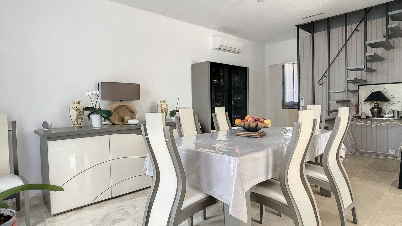 A41246CHS30 - EXCLUSIVITY. Les Angles, residential area. Discover this traditionally-built architect-designed villa with 137 m² located at the end of a cul-de-sac, in absolute peace and quiet and close to all amenities. Completely renovated, the ground floor comprises a magnificent 43 m² living space with a lounge and dining room opening onto a pretty travertine terrace. The fully-equipped kitchen is separate, modern and ultra-functional. 3 bedrooms, one with en suite shower room and a separate bathroom. Separate WC. Upstairs, a lovely 37 m² bedroom. Set in 570 m² of enclosed grounds planted with trees, the property has a new swimming pool, fully equipped with bar cover. The property also has a garage, and you can easily park several vehicles in the cul-de-sac. This comfortable, sunny villa is a real gem and will welcome your family in a privileged setting just a stone's throw from shops, schools and transport links.