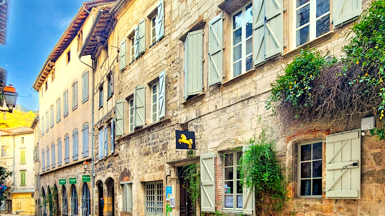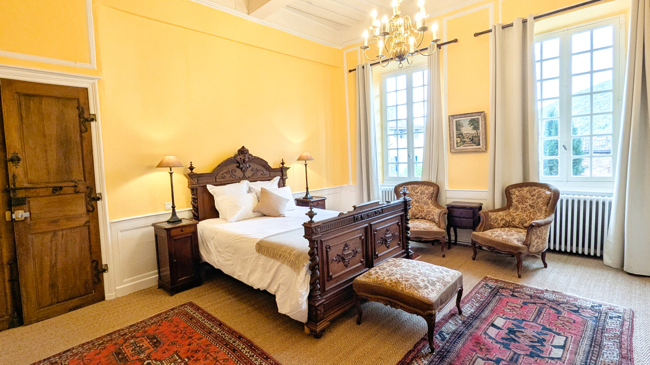 A33977SOM82 - Amazing opportunity to acquire a beautifully-presented home in this mediaeval market town. Character and charm are everything here, from the central entrance hall and sweeping wooden staircase up to the huge attic rooms with exposed beams and down to the ancient vaulted cellars. In between, the well proportioned, airy rooms have been decorated with style. The property has been run as a tourist accommodation business and offers two large two-bedroom apartments, five en-suite bedrooms, and an independent studio/gîte.