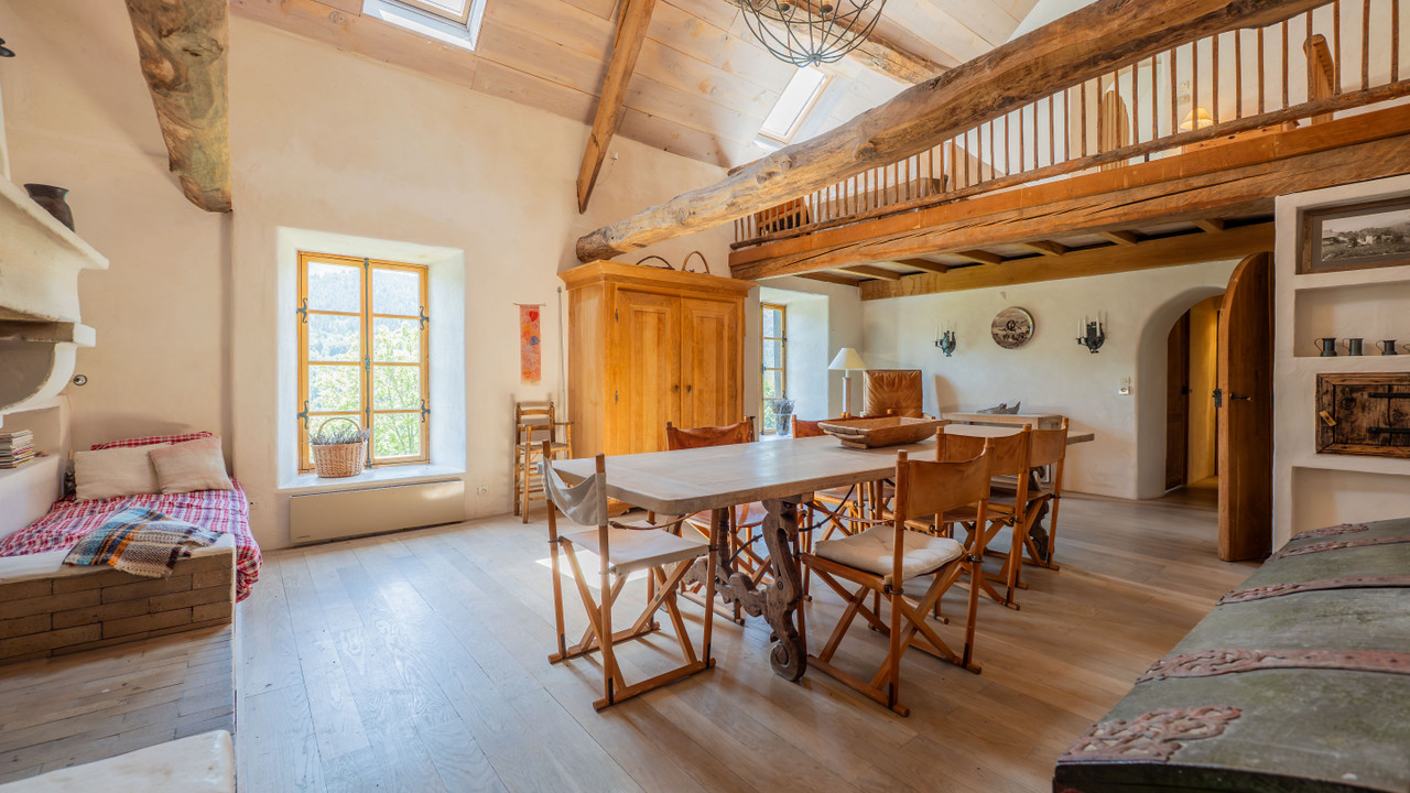 The first house comprises a living room/kitchen, a shower room and a bedroom on the ground floor. The first level features a large living room with fireplace, a bedroom, a shower room and a mezzanine.