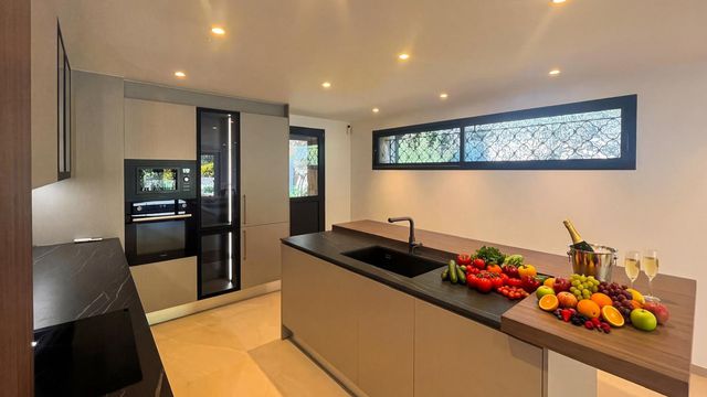 Renovated in 2025, the villa offers approximately 300 m² of living space, including bright reception areas of 83 m², two bedrooms and two elegant suites, as well as an independent annex with two additional bedrooms. The interior design allows the future owner to personalize the space according to their tastes.