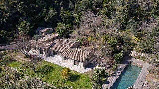A43277NEM06 - Just 40 minutes from Nice Côte d'Azur Airport, this fully renovated stone house is set within a 1.6-hectare wooded estate, offering peace, privacy, and security. From the entrance, a private driveway lined with lanterns leads to the main villa, gradually revealing its imposing presence.