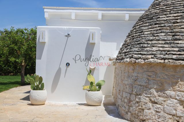 Complejo de trulli completamente renovado con piscina (5×10 h 1,50), jardín con césped y olivos y algarrobos; se encuentran en un contexto particularmente interesante desde el punto de vista naturalista, a 2 km de la Torre Castiglione. Consta de 1 dormitorio doble, un dormitorio con dos camas individuales, un baño con ducha, salón y cocina. En el exterior hay una pérgola con mesa y sillas y una cocina y zona de barbacoa. Cerca de la piscina, zona de relax a la sombra de una pérgola con sofás y cojines, ducha exterior con lavadero. Zona solarium con tumbonas. Situado a sólo 3 km del centro de Castellana Grotte, a 5 km de Conversano, a 15 km de Monopoli Terreno de aproximadamente 2.000 m2. La villa se vende completamente amueblada y equipada con todos los muebles.