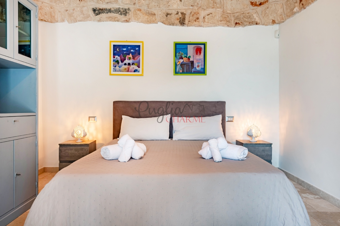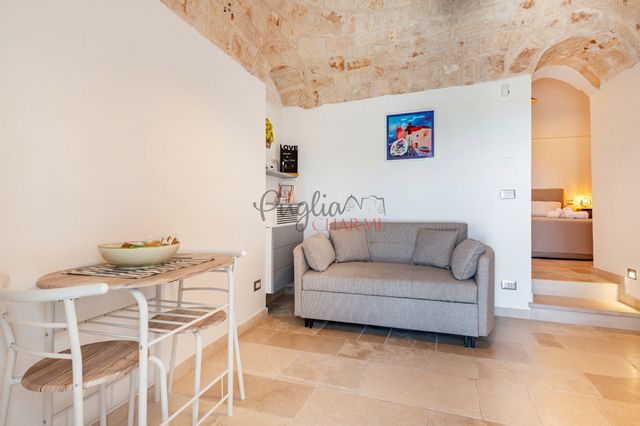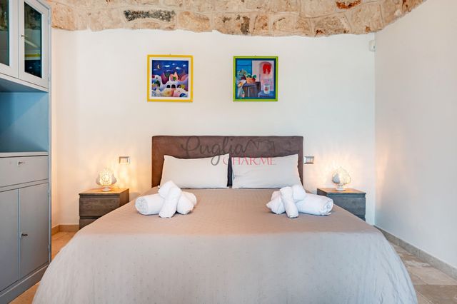 La propiedad se divide en tres apartamentos, con un total de siete trulli cónicos y una superficie total de 140 metros cuadrados.