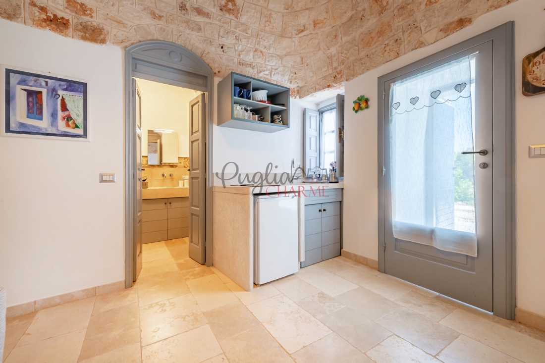 Lo más destacado es la elegante piscina, enclavada en la vegetación y con un patio donde podrá disfrutar de agradables momentos al aire libre. Su ubicación estratégica le permite estar cerca de Fasano, manteniendo una conexión íntima con la naturaleza y la tranquilidad, lejos del bullicio de la ciudad.