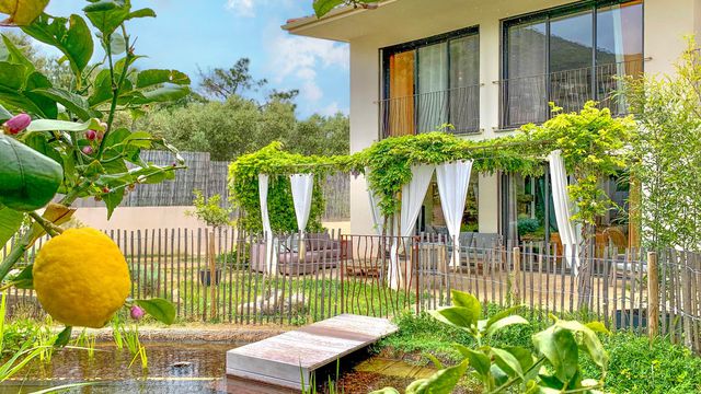 Located at the base of Monticello village, in a quiet environment, the property is South facing, allowing you to enjoy natural light in all seasons. Very close to Shops, Restaurants, Fine sandy beaches, Schools and L'Ile-Rousse town. The terrace, natural pool and Mediterranean landscaped garden all contribute to the serenity of this uniquely designed home. Ideal for hosting friends & family or for private business, as there are independent access options and residual right to build on the plot of land. We also offer currency transfer services if needed. Information about risks to which this property is exposed is available on the Géorisques website : https://www.georisques.gouv.fr