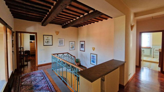 Resulting from the skilful and careful renovation of a farmhouse, the beautiful villa enjoys beautiful views over the Tuscan countryside and absolute privacy, despite being located close to the village, where all necessary shops and services can be found.