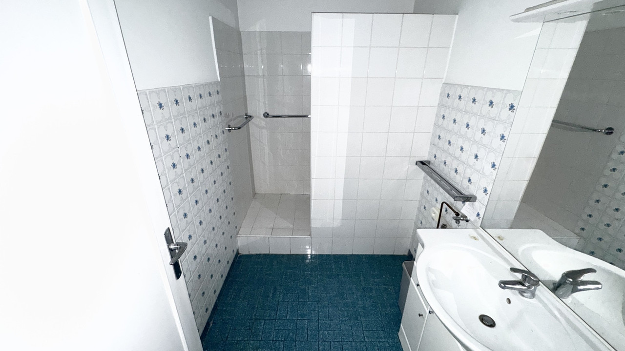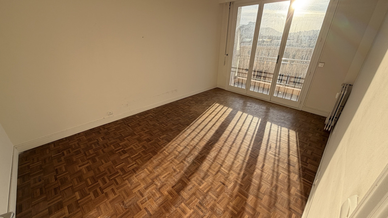 3 pièces (poss. 4), 5ième étage sur 7. 87m². 2 chambres de 16m², 1 SdE, 1 wc. Balcon 6m². Poss. garage + 50k€