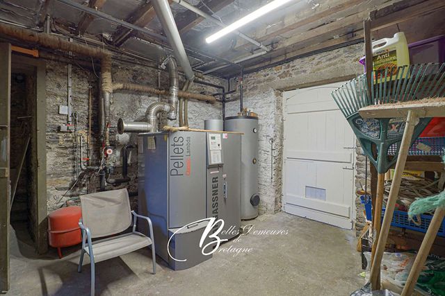 Au sous-sol : buanderie, cave, chaufferie équipée d'une chaudière à granulés de bois, atelier et cellier.