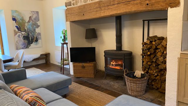 La maison: Elle comprend une entrée privée dans l'espace de vie avec une cuisine américaine et un cantou dans lequel est installé un poêle à bois. Des toilettes complètent cet étage.