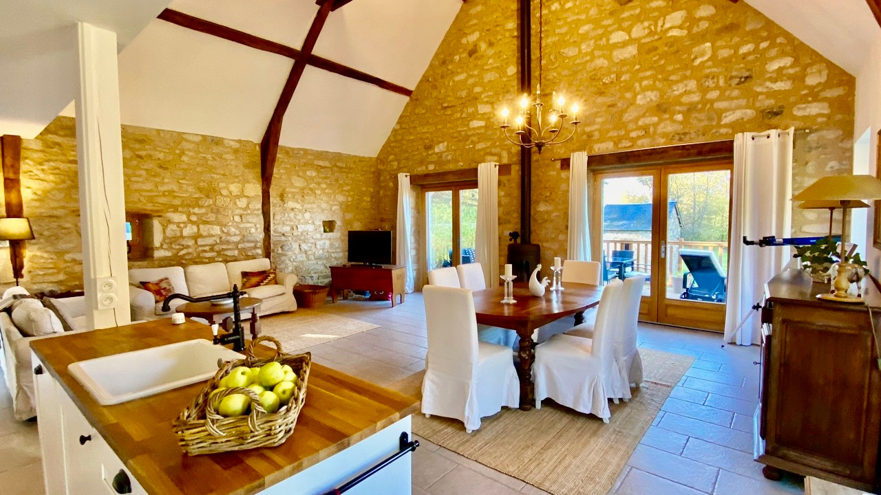 Ancienne ferme et grange attenante aménagée en gîte haut gamme ou maison familiale-un total de 4 ch / 4sdb