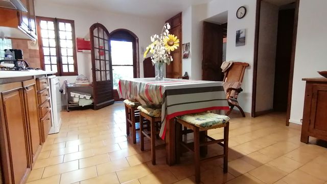 La maison offre tout le confort avec un large pièce de vie pour les soirées au coin du feu , une grande cuisine conviviale pour les repas de familles, 3 chambres, 2 salles de bains et 1 cabinet de toilette.