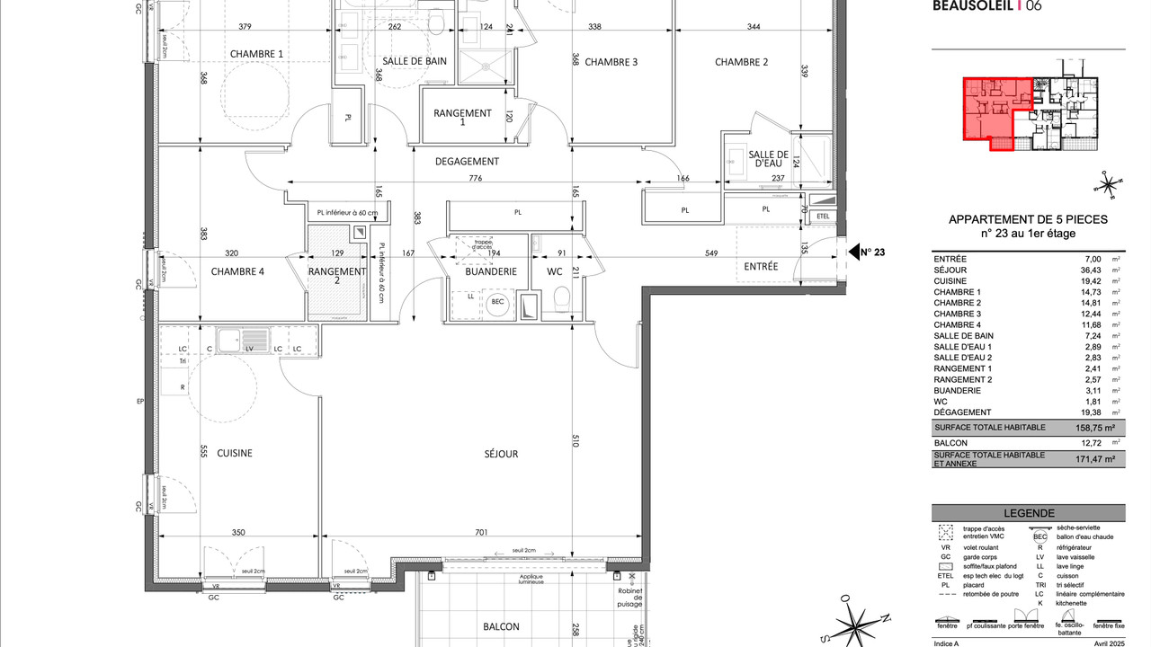 Beausoleil - Programme neuf. Appartement 5 pièces en étage, parking