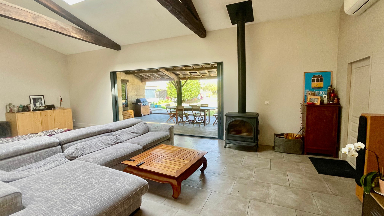 A39363MK33 - Située aux portes de Bordeaux et Libourne et des gares, ainsi qu'également proche des toutes les commodités, du terrain de golf et des autres activités du sport cette belle Girondine en pierre de taille est très appropriée pour une grande famille (recomposée) avec une vie active et/ou une profession libérale. L'ensemble, la Girondine et ses dépendances attenantes aménagées, dispose une surface habitable de 450 m², comprenant une grande salle de réception avec une grande B-vitrée donnant accès sur une agréable terrasse couverte, une grande cuisine bien équipée, 7 chambres (2 au rdc et 5 à l'étage) et une annexe de 150 m² sur deux niveau, accessible par l'intérieur, mais avec la possibilité de la séparer pour une profession libérale, ou pour une (co-)habitation !