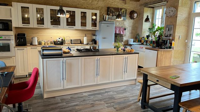 A36240LC24 - Située à la périphérie d'un charmant village de campagne, à une courte distance de deux villes avec commerces, cette maison en pierre de 7-chambres, magnifiquement présentée, avec des murs en pierres apparentes et des poutres caractéristiques, situé autour d'une cour et offre une flexibilité et un potentiel de revenus exceptionnels.