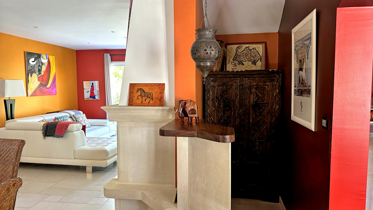 Au rez-de-chaussée : 1 salon / salle à manger, 2 salons, 1 cuisine ouverte, 1 chambre, 1 dressing, 1 salle de bain, 2 WC, 1 bureau, 1 véranda, 1 patio. 1 poêle et 1 cheminée à foyer fermé agrémentent cet espace de vie.