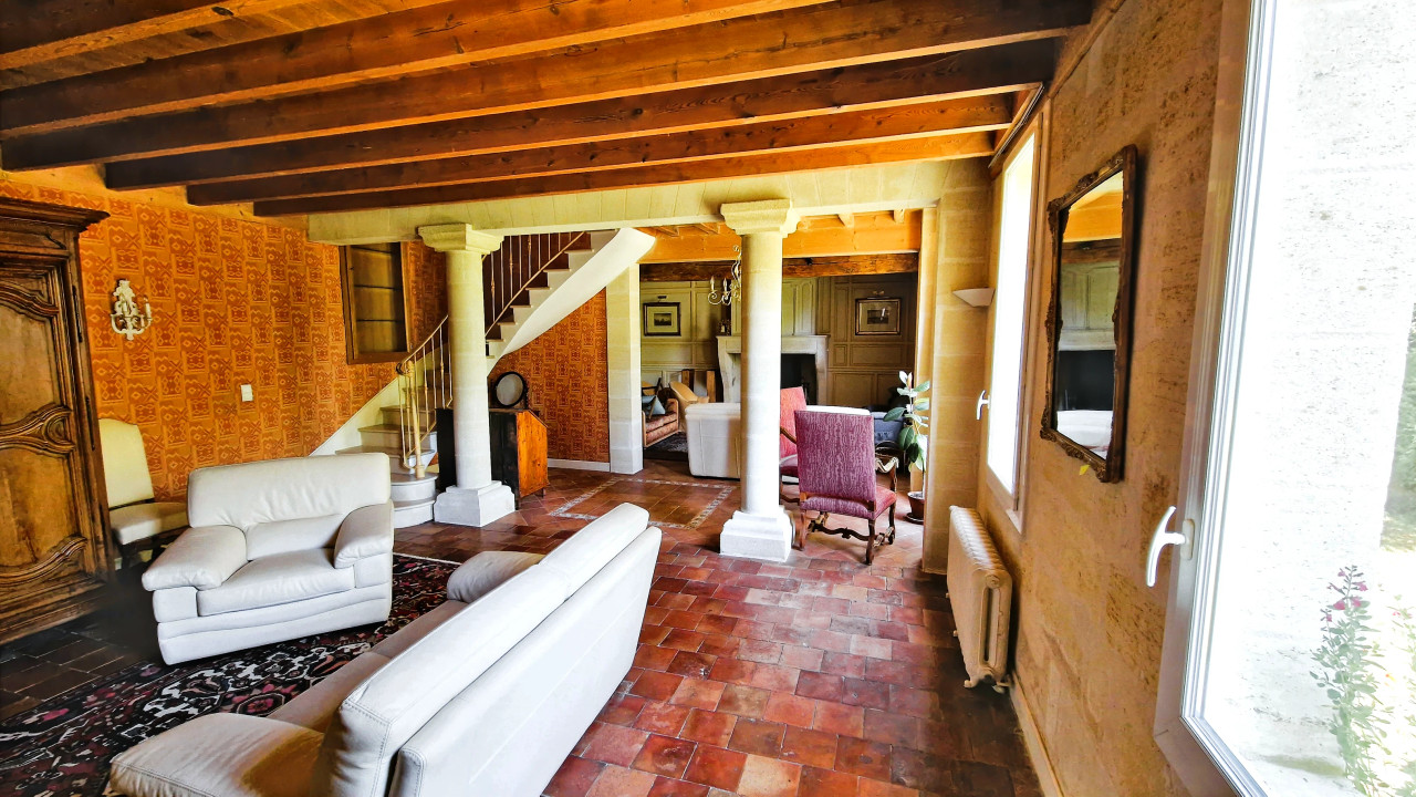 A34082SAG33 - Située dans la charmante commune de Saint-Sulpice-de-Faleyrens, cette belle propriété allie élégance et confort. Idéalement située, à seulement 10 minutes de Saint-Émilion et Libourne, et à 40 minutes de Bordeaux.