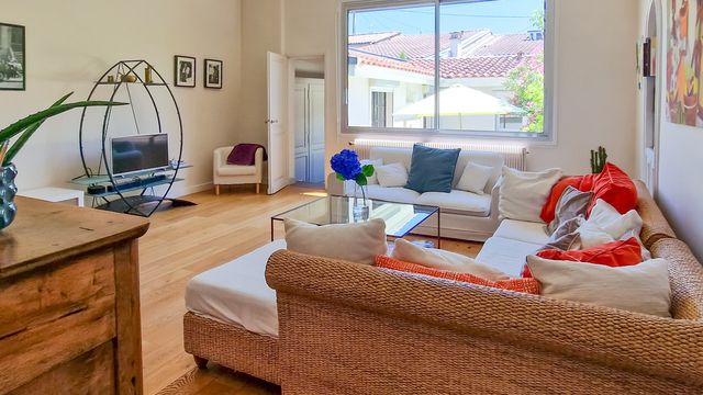 A38086GM33 - Située dans le quartier très prisé Saint Bruno / Judaïque à Bordeaux, cette élégante maison en pierre de 176 m² allie charme de l'ancien et confort contemporain. Dans une rue calme, elle offre de beaux volumes et une cour privative sans aucun vis-à-vis. Le niveau principal comprend un salon lumineux, une salle à manger(ancienne chambre), une cuisine indépendante entièrement équipée ouvrant directement sur la cour paisible, parfaite pour les repas en extérieur ou les moments de détente. Une buanderie, un WC invités et une grande chambre avec salle de bains (baignoire et douche à l'italienne) complètent ce niveau. Au rez-de-jardin, deux chambres supplémentaires avec dressings, un grand bureau (ou 4e chambre), une salle d'eau avec WC, ainsi qu'une cave offrent un espace fonctionnel et agréable. Une place de parking est disponible à proximité. L'emplacement est idéal, à proximité immédiate du Bordeaux International School, de l'École Sainte-Marie et du Lycée Saint-Joseph de Tivoli. Les informations sur les risques auxquels ce bien est exposé sont disponibles sur le site Géorisques : https://www.georisques.gouv.fr