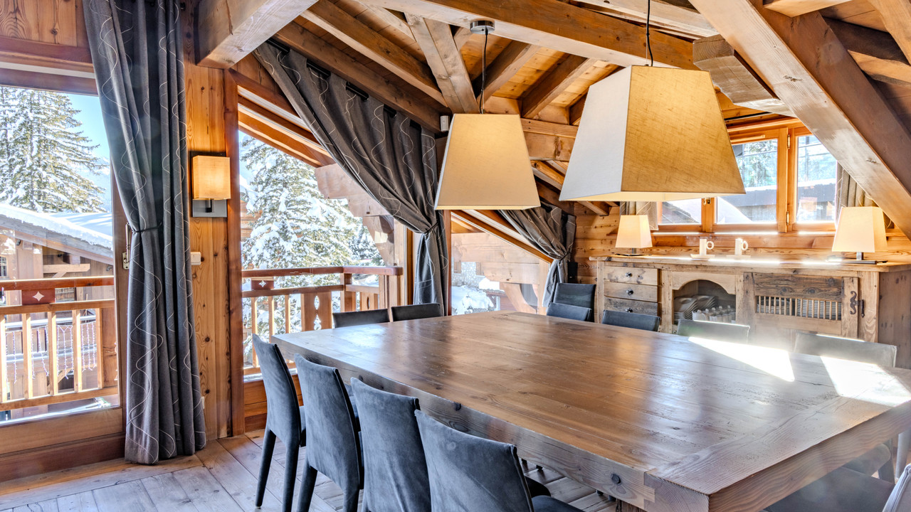 Chalet exclusif avec vue imprenable, parking privé, à seulement 77 m de la piste de ski à Courchevel 1850