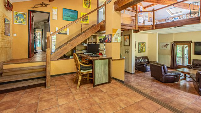 A39552SNM82 - Belle maison familiale spacieuse de 4/5 chambres sur 8,5 hectares offrant calme, intimité et superbes vues. La propriété dispose d'un paddock, d'un ruisseau, d'écuries, d'une grange et d'un pigeonnier, laissant de la flexibilité pour les loisirs en plein air ou les chevaux. À l'intérieur, de grands espaces lumineux et accueillants comprennent une salle de jeux/5ᵉ chambre, un bureau, un sauna, des combles et une cave. Une piscine couverte permet de profiter toute l'année, et les dépendances offrent de nombreuses possibilités pour les loisirs ou le stockage. Paisible et privé, tout en étant à seulement 5 minutes d'un village animé avec écoles, commerces et commodités, avec d'excellentes liaisons de transport. Cette maison atypique et pleine de charme combine espace, caractère et polyvalence—idéale pour la vie familiale, les réceptions et le confort à la campagne.
