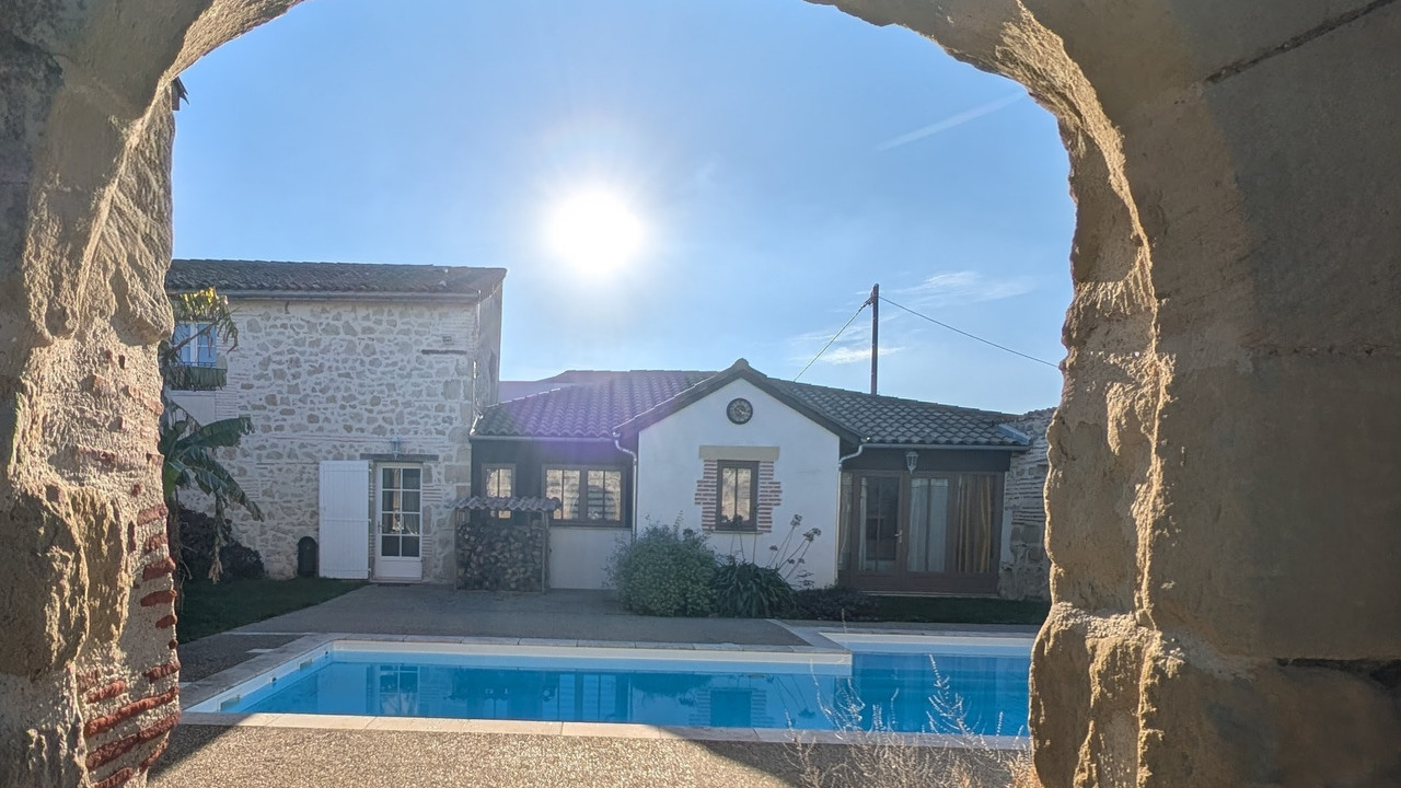 A41508SRS47 - Magnifique propriété isolé, situé dans un cadre verdoyant, très lumineuse avec beaucoup de cachet, gite séparé d'une chambre, piscine et nombreuses dépendances situé à mi-chemin entre Bordeaux et Toulouse à côté de Fauillet dans la campagne Lot et Garonnais.