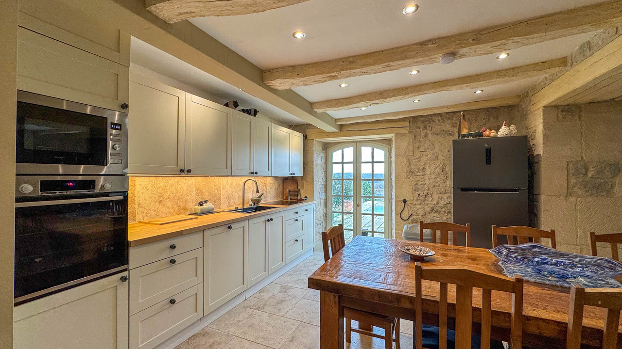 A34473NK47 - Nichée dans un quartier résidentiel paisible, proche de toutes commodités, cette propriété bénéficie d'une vue imprenable sur la campagne environnante. La maison principale a été récemment rénovée par le propriétaire actuel, offrant des espaces de vie spacieux et accueillants. Au rez-de-chaussée, les espaces de vie ouverts s'ouvrent harmonieusement sur une généreuse terrasse, agrémentée d'une piscine, un endroit idéal pour se détendre et profiter des vues spectaculaires. A l'étage, vous trouverez 3 chambres de bonne taille, chacune avec sa propre salle de bain privée. Le gîte indépendant (1 chambre) avec son entrée privée offre un potentiel supplémentaire, que ce soit pour l'hébergement des invités ou comme opportunité de location prête à commercialiser. La grange en pierre offre de nombreuses possibilités.