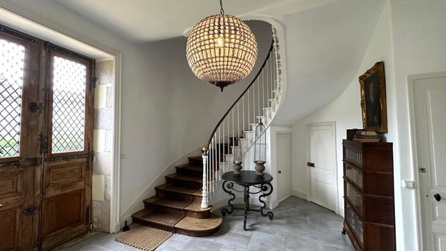 Château de huit chambres entièrement rénové et meublé avec piscine chauffée, situé au cœur d’un village
