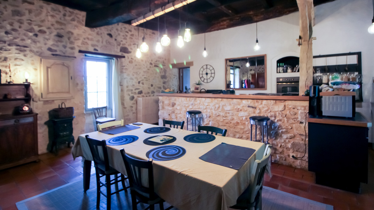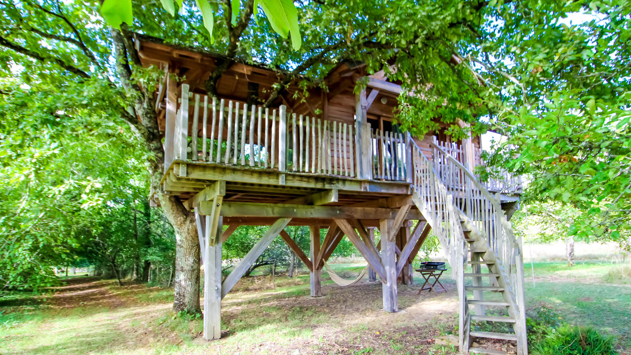 Domaine avec maison principale, 1 gîte, 2 cabanes perchées, une piscine, une noyeraie et plusieurs bâtiments