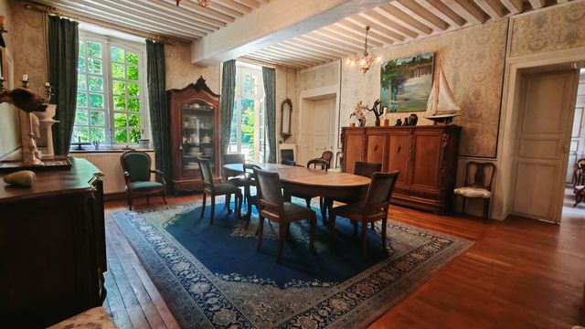 A38149ABR03 - Ce magnifique manoir de 1750, repensé en 1884 et restauré avec soin depuis 1999, allie grandeur historique et confort moderne dans un cadre rural idyllique. Offrant environ 500 m² d'espace habitable raffiné, il comprend de belles pièces de réception, une grande cuisine fermière, une aile privée pour les invités, et des éléments d'origine tels que poutres, cheminées en pierre et boiseries.